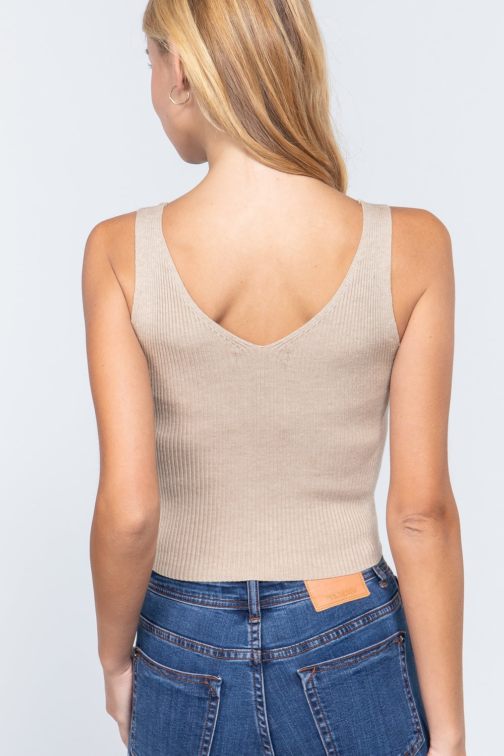 SLVLESS SHIRRING TIE RIB SWEATER TOP