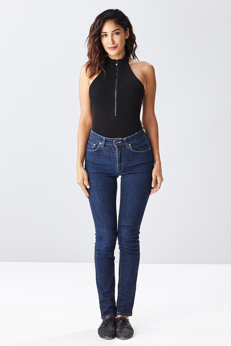 Solid Choker Neck Zipper Front Bodysuit