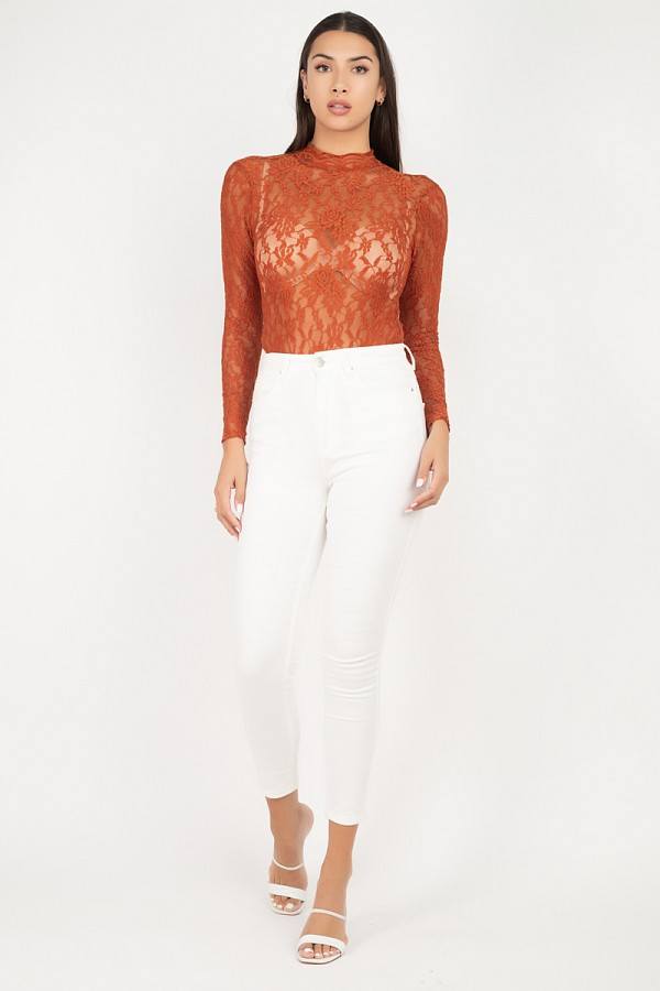 Sheer Floral Lace Bodysuit